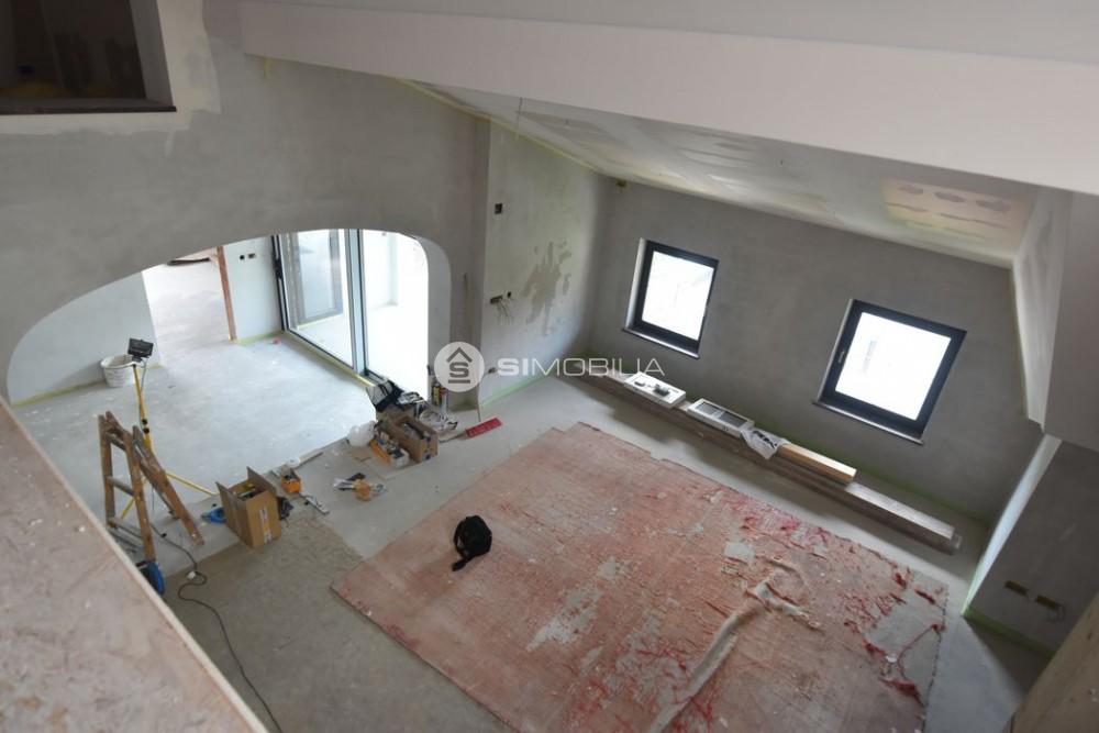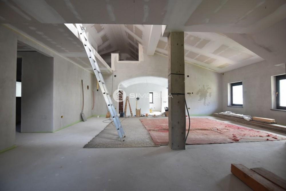 In the attic, up to 4 construction phases, a modern, bright, spacious, open apartment is arranged. In this part there are two studios, one is made as a duplex.In the central part is a large open space, with a gallery. Here are two bedrooms, a larger bathroom, toilet, kitchen. From the kitchen and living room, there is an exit to a larger terrace on the south side of the building. From the bedrooms there is an exit to the balcony on the west side of the building. In the gallery, it is possible to arrange a library, social space, rest area, reading room. The attic has underfloor heating in all rooms.